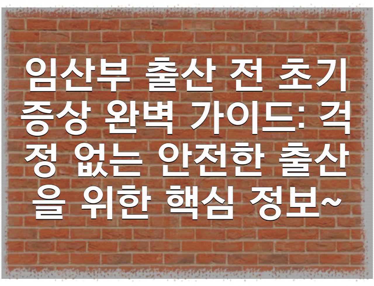 임산부 출산 전 초기 증상 완벽 가이드 걱정 없는 안전한 출산을 위한 핵심 정보